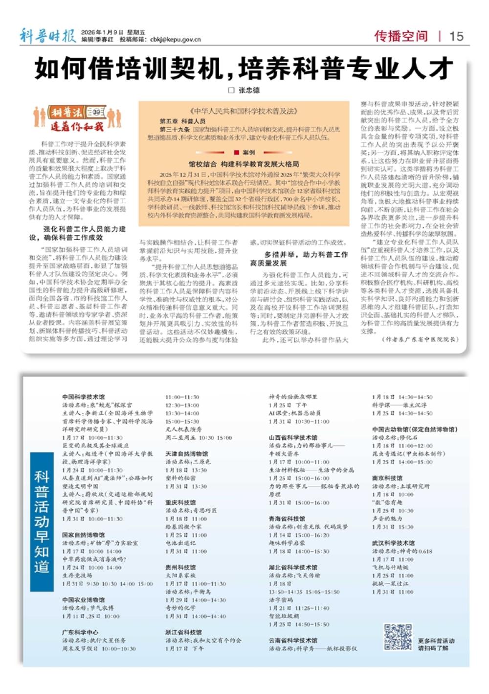 如何借培训契机,培养科普专业人才