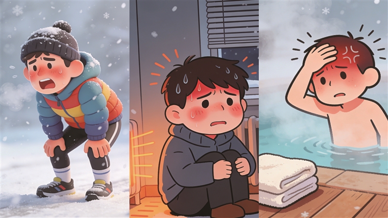| 冬季长时间待在过度供暖的房间、桑拿房、温泉池,或进行高强度体力活动,容易诱发热射病。AI制图 |