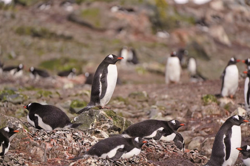 | 阿德雷岛上的白眉企鹅。 梁琦 摄 |