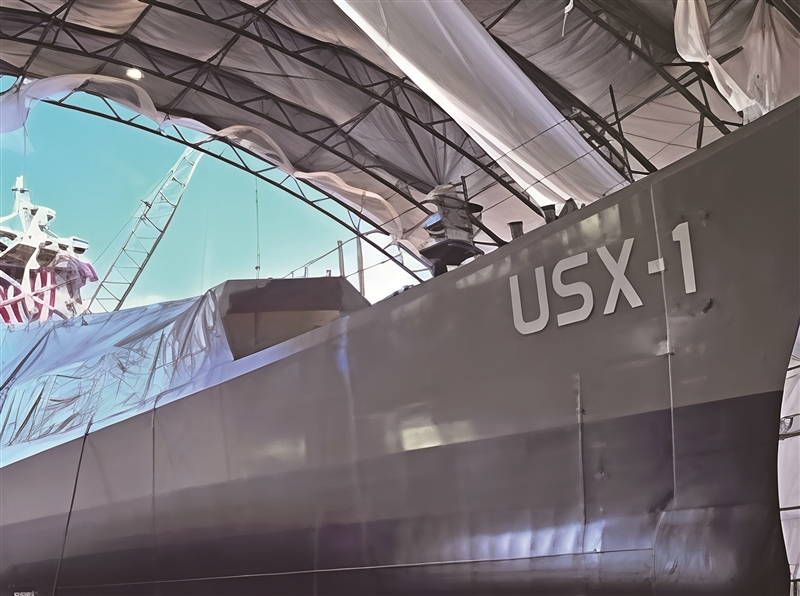 USX-1采用模块化分段预制+快速总装的建造思路工艺,直接打破传统舰船对专用造船厂的依赖。
