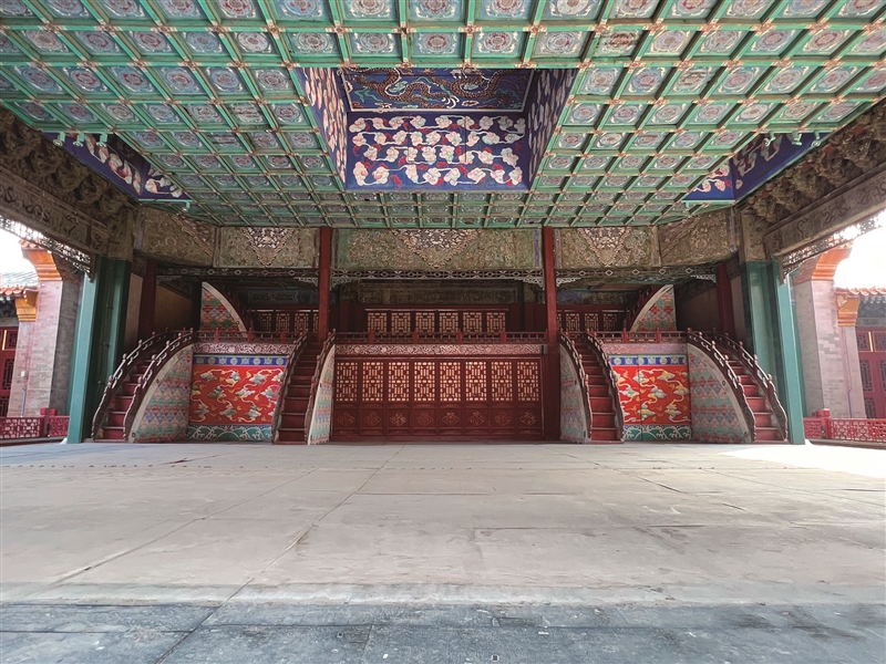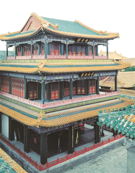 阅是楼是皇帝落座看戏的地方;畅音阁为三层高的大型戏楼,是演出的核心区域;戏台之后的扮戏楼,供演员化妆与准备之用;而两侧回廊,则设席供王公大臣陪同看戏。