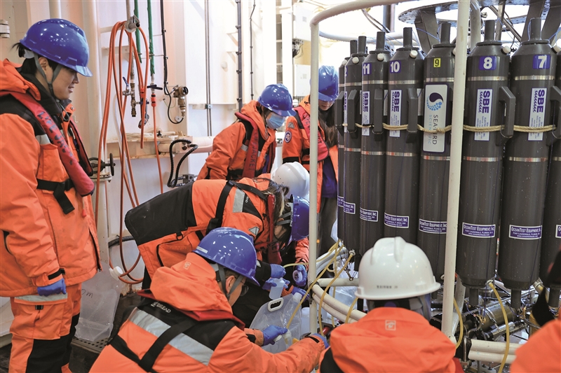 “我们要分析海水中的溶解氧、营养盐、溶解有机碳等15项关键海洋化学参数。”分析化学组组长、自然资源部第二海洋研究所助理研究员朱长凤一边取水,一边向科普时报记者介绍。