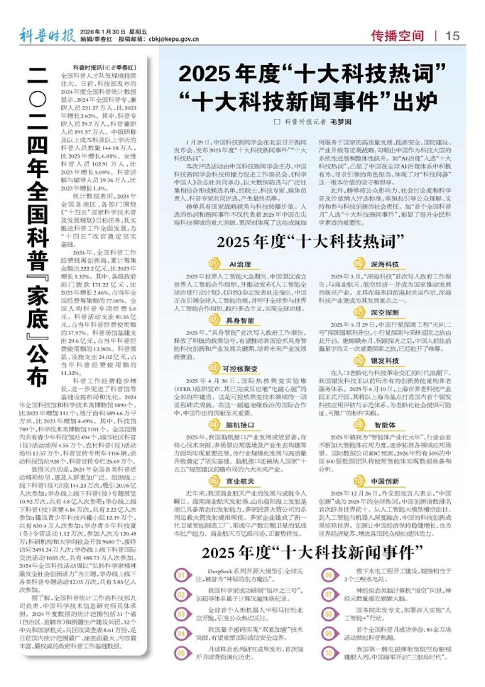 2025年度“十大科技热词”“十大科技新闻事件”出炉