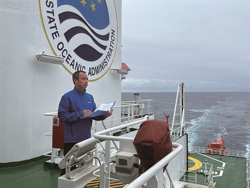 船时每天中午12时,陈宇东准时出现在“雪龙2”号驾驶台。与其他前来欣赏美景的考察队员不同,这位中国第42次南极考察队“雪龙2”号大洋队副队长、自然资源部东海局正高级工程师在观察寻找海漂垃圾。