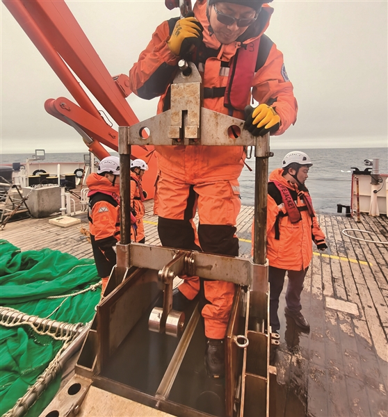 沉积物样品如何得到呢?“雪龙2”号大洋队队员、自然资源部第一海洋研究所副研究员唐正告诉记者,考察队员用的是箱式取样器和柱状取样器。