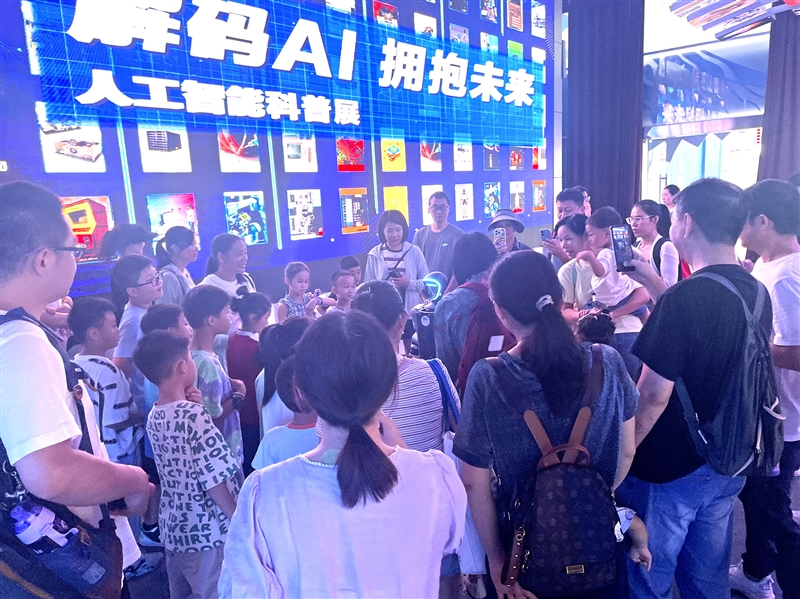 基于观众对沉浸式体验的需求,广西科技馆在系列展览中积极融入新技术,创新场景叙事方式,探索出了一条科普新路径。比如,在人工智能展中,观众可以触摸空中成像的虚拟按键切换AI应用场景,通过手势指挥AI画像等;模拟AI科技屋,以深蓝星空为背景,配备AI数字人、智能穿戴设备、无人机等实物展项营造科技氛围,激发观众的情感共鸣。