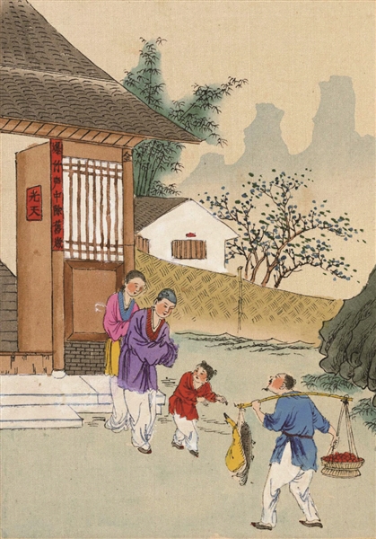 | 《年节习俗考全图》中所录“除夕谢年”。 (图片选自《春节》) |