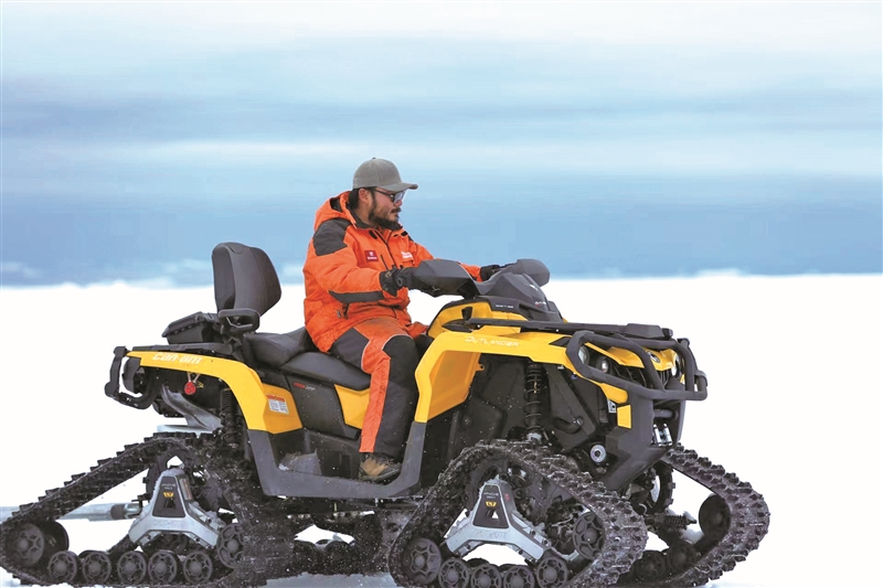 | 赵端然驾驶雪地摩托行驶在冰雪机场。 |