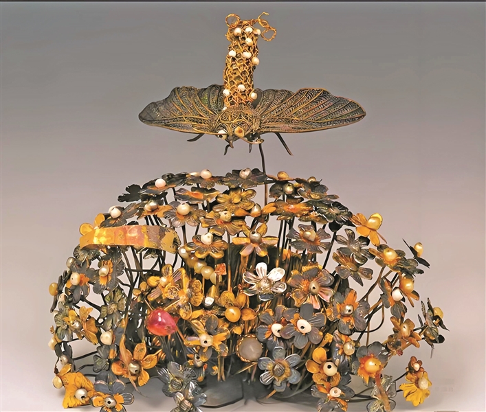 | 图①: 清 红漆镂雕镶嵌牛角画龙纹绣球式庆成灯 故宫博物院藏。庆成灯是紫禁城中专为元宵节定制的宫灯,寓意“德庆功成”,常在元宵节祭祖时安放于太庙或奉先殿以示追思。 图②: 隋 闹蛾冠饰 中国国家博物馆藏。 图③: 明 《上元灯彩图》(局部) 台北观想艺术中心私人藏。 图④: 明 《宪宗元宵行乐图》(中国国家博物馆藏)中的万寿灯,其上悬挂成串的绣球灯、娃娃灯,极尽巧思。 图⑤: 明 《宪宗元宵行乐图》中的鳌山灯。鳌山灯是古代元宵灯节上的特定景观。鳌山是神话传说里海中巨鳌驮起的仙山,而灯节中的鳌山灯也常用苍山、流水、仙人和万物生灵等元素,以及各种色彩扎结串联搭建,熠熠生辉,灯如星布,蔚为壮观。一些鳌山灯可高十余层,属于大型的奇观灯彩。 |