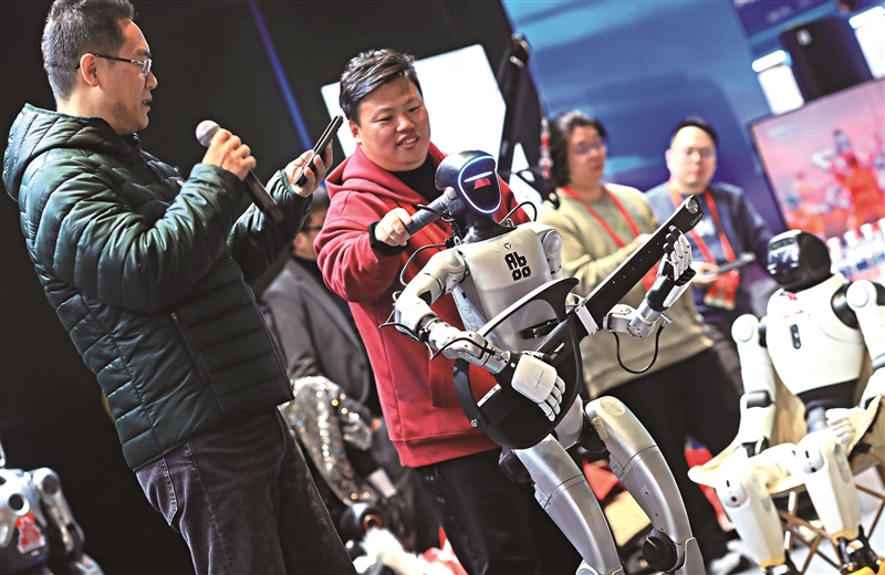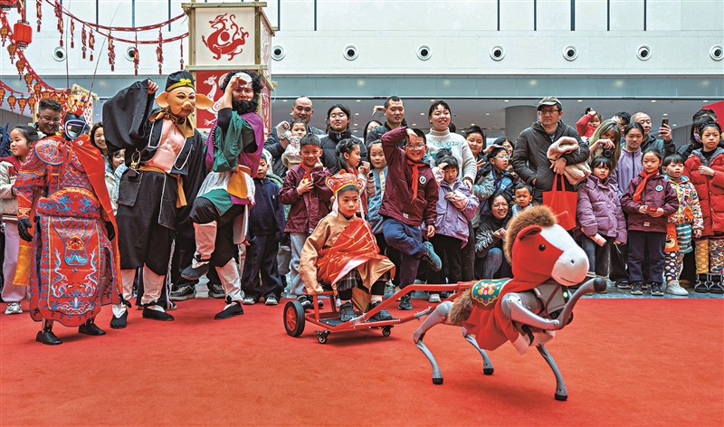从央视马年春晚到各地新春庙会,智能机器人、机器狗等“演员”轮番登场,用丰富多彩的文艺演出诠释“中国智造”的魅力。在北京举办的2026大都新春庙会上,来自宇树科技、松延动力、智元、小米等多家企业的10余款人形机器人、机器狗、仿生机器人,或以炫酷的舞蹈、灵动的演奏,或以激烈的擂台格斗,赢得现场观众阵阵欢呼;在浙江金华,机器人、机器狗与《西游记》中的“唐僧师徒”在科技馆里携手表演,将神话故事融入现代科技;在四川宜宾,5000架无人机在空中变换出哪吒、大熊猫等图案,为市民和游客呈现视觉盛宴……