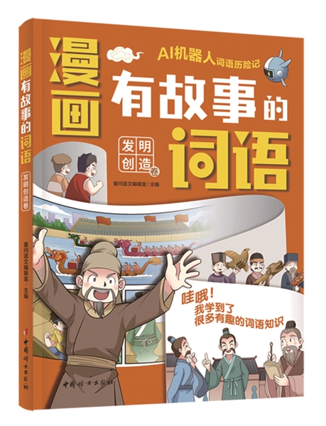 | 《漫画有故事的词语·发明创造卷》,童问语文编辑室主编,中国妇女出版社出版。 图书以漫画为主要形式,通过AI机器人和主人公丁丁的穿越冒险故事,为小读者们生动有趣地讲解了24个常用词语出现的来龙去脉和当代的含义用法。 |