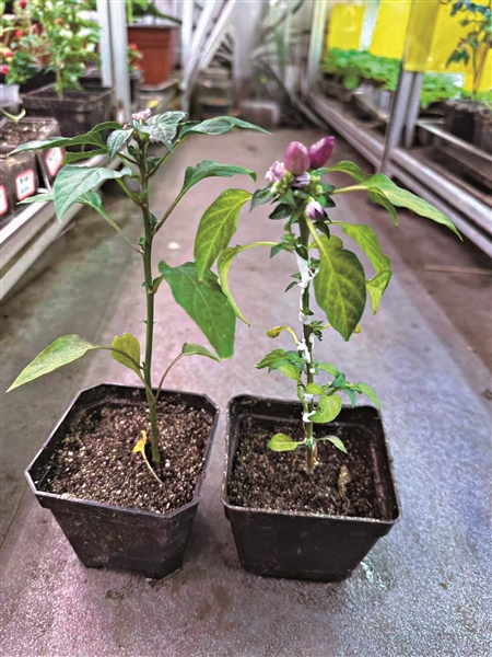 | 2025年10月29日,重庆大学实验室中培育与优选出来的辣椒植株。 |