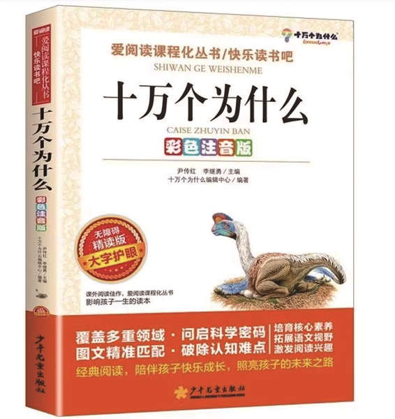 | 《十万个为什么》(彩色注音版),尹传红 李继勇主编,十万个为什么编辑中心编著,少年儿童出版社出版。 想知道大象用鼻子喝水为什么不会呛到,好奇地铁为什么都是在地下运行的吗?用彩色画面、注音文字和趣味问答的形式,把众多核心领域的科学奥秘,变成孩子能轻松读懂、主动爱上的知识乐园。 |