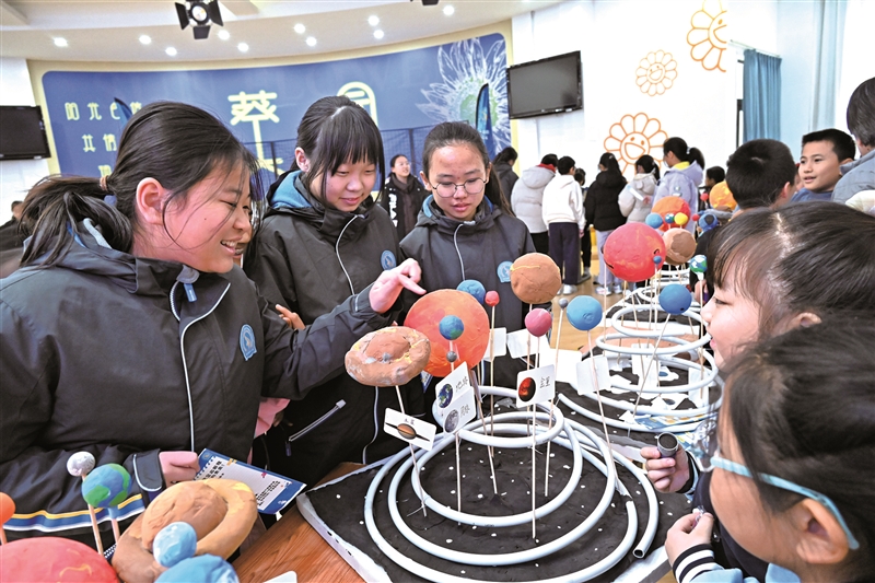 葵园科学教育的理念是,问题比答案更重要。据此,学校重点开发建设“问题树”课程——从“我们”“它们”“地球”“宇宙”四个维度展开“设问→探究→评价”。班级、家校、协会为项目开展提供各种支持。