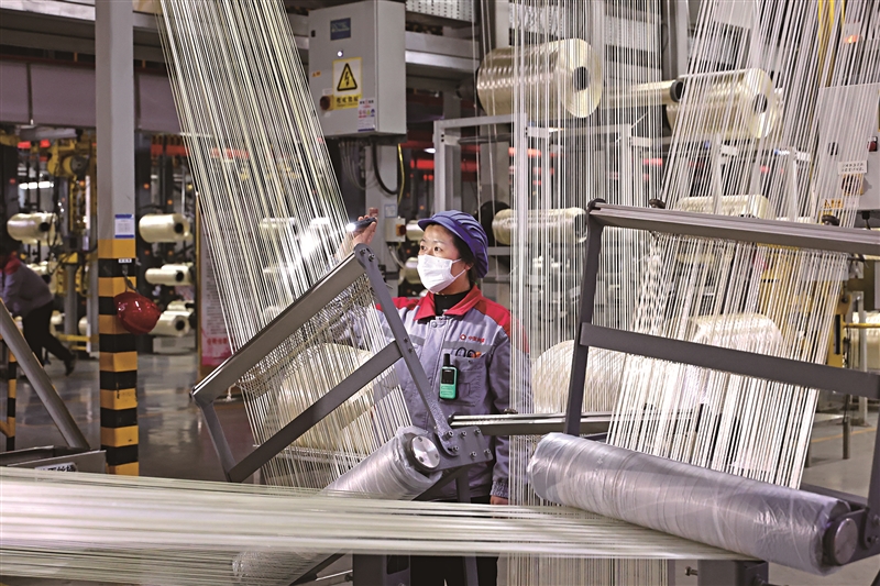 | 3月17日,工人正在碳纤维生产车间查看原丝丝道运行状况。 |