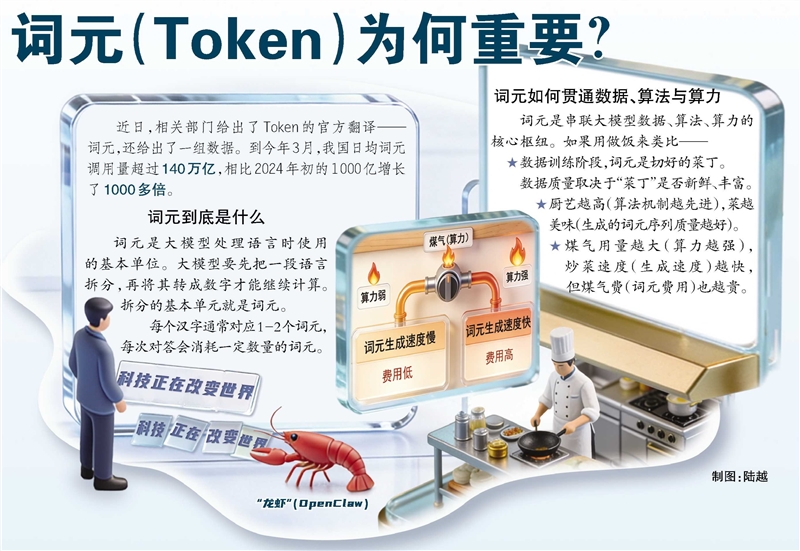 近日,相关部门给出了Token的官方翻译——词元,还给出了一组数据。到今年3月,我国日均词元调用量超过140万亿,相比2024年初的1000亿增长了1000多倍。