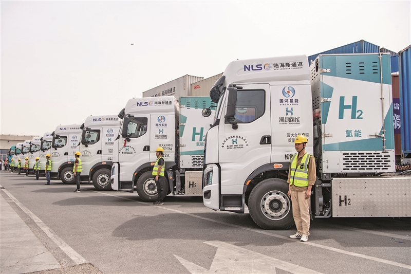 | 2025年4月14日,全程约1150公里,中途设有4座加氢站的西部陆海“氢走廊”投运。 新华社记者 唐奕 摄 |