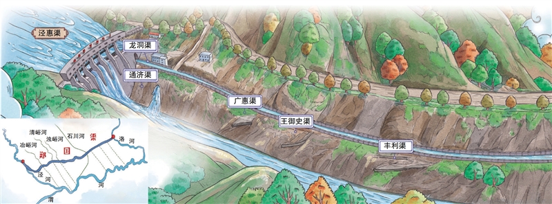| 郑国渠与“关中八惠”示意图。图片由石子儿绘,童趣出版有限公司授权使用,选自图书《伟大的中国智慧:世界灌溉工程遗产》。 |