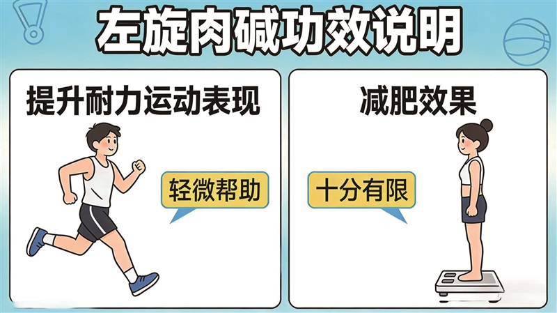 研究表明,左旋肉碱可能对提升耐力运动表现有轻微帮助,但对减肥效果十分有限。它本身并不能主动“燃脂”,如果只靠吃左旋肉碱,却不运动、不控制饮食,吃再多都不会瘦,千万别白交智商税。