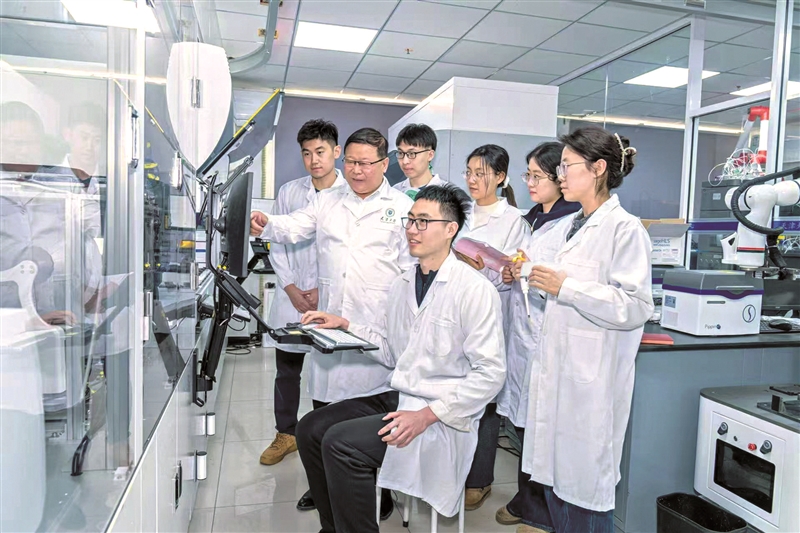 | 2026年3月,中国科学院院士、天津大学教授元英进(左二)带领团队进行“DNA存储”研究。作者供图 |