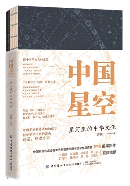 | 《中国星空:星河里的中华文化》,齐锐著,中国纺织出版社有限公司出版。 这是一部介绍中国传统星象的人文科普读物。图书围绕“三垣二十八宿”星象体系展开,通过星空图与手绘图,构建十大天文知识体系,把复杂的专业知识用通俗化、形象化的方式呈现给读者。 |