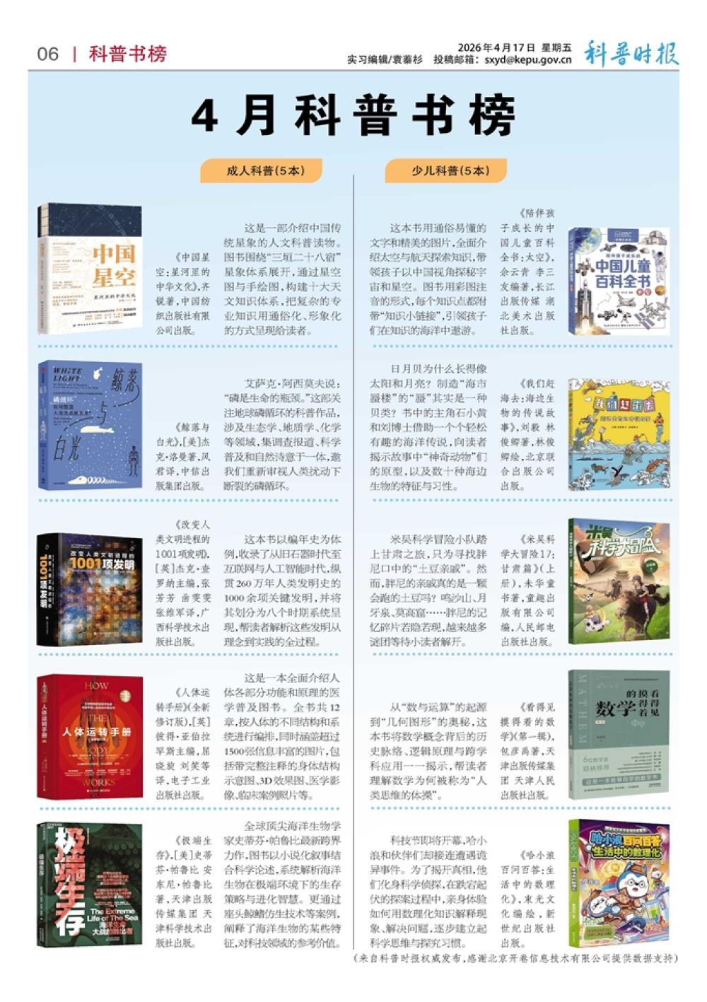 4月科普书榜:少儿科普(5本)