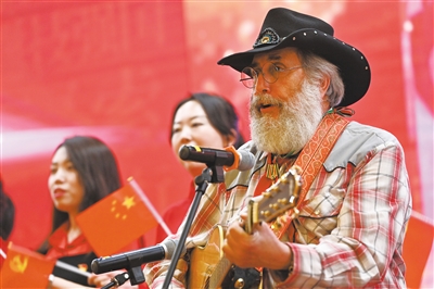 | In an activity organized by the Ministry of Science and Technology,Mark Levine and the young people from the MOST are singing The Future's Very Bright ahead Led by the CPC in English, French, Russian, Japanese and German. (PHOTO: THE MOST) |