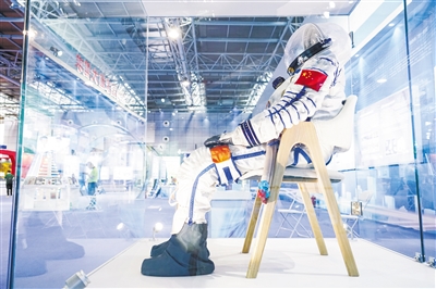 | A Chinese Space uniform was displayed to the public during the National Science and Technology Week in May in Beijing. (PHOTO:VCG) |