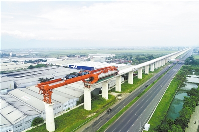 | Chinese and Indonesian builders work near the 4th girder yard of the Jakarta-Bandung High-Speed Railway in Indonesia on May 1, 2022. The railway is a landmark project of the Belt and Road Initiative and practical cooperation between China and Indonesia. It is 142 kilometers long. Once completed, the travel time between Jakarta and Bandung will be reduced from more than three hours to 40 minutes. (PHOTO: XINHUA) |