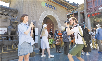 | ?The Tianjin Municipal Science and Technology Bureau organized a themed tour of the city's cultural landmarks on June 24. Foreign experts were invited to explore Tianjin's folk culture at cultural scenic spots like the Ancient Cultural Street and Drum Tower. (PHOTO: Tianjin Municipal Science and Technology Bureau) |