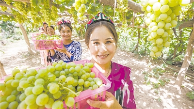 | Grape harvest in Kuqa, Xinjiang Uygur Autonomous Region. (PHOTO: VCG) |