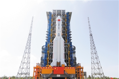 | The combination of China's space station lab module Mengtian and its carrier rocket Long March-5B Y4 has been transported to the launch area, according to the China Manned Space Agency. The lab module will be sent into orbit at an appropriate time in the near future. (PHOTO: XINHUA) |