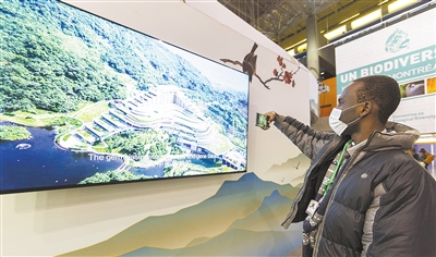 | A participant takes photo inside China Pavilion at 2nd phase of COP15 in Montreal,Canada, on Dec. 7, 2022. (PHOTO: XINHUA) |