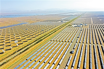 | Collecting Solar Energy A great many of solar PV panels are installed in a PV industrial park in Hami, China's Xinjiang Uygur autonomous region. (PHOTO: VCG) |