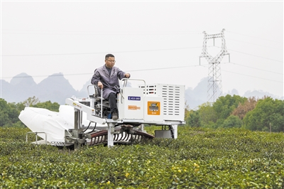 | China's first self-developed riding tea picking machine has been successfully tested, with efficiency more than three times that of two-person tea picking machine. (PHOTO: VCG) |