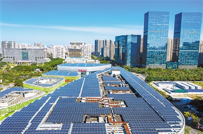 | Photovoltaic panels installed on rooftops of the Riyue Square in Haikou city, Hainan province. (PHOTO: VCG) |