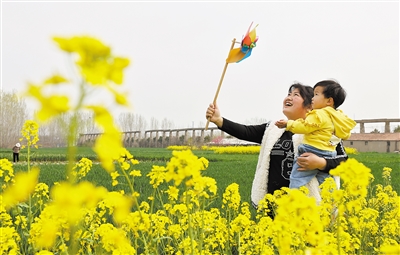 | The picture shows a mother and her son going spring outing during the Qingming festival in Shandong province. The two main activities over the festival include tomb sweeping and going on a spring outing. (PHOTO: XINHUA) |