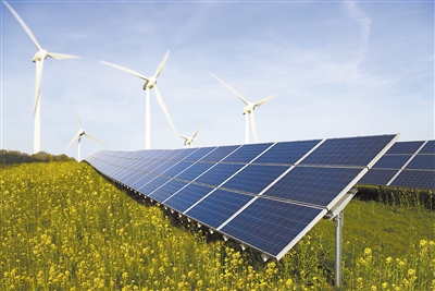 | Solar panels and wind turbines. (PHOTO: VCG) |