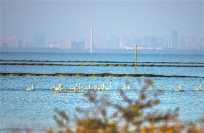 | A group of swans swim in Chao Lake, which is one of the China's largest fresh-water lakes and located in the southwestern part of Hefei, Anhui province. (PHOTO: VCG) |
