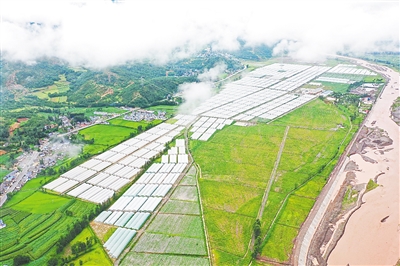 | An aerial view of the greenhouses scattered at the Fuzhao Modern Agricultural Park in Liangshan prefecture. (Photo provided by Zhao Jifei to S&T Daily) |
