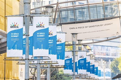 | Signboards of the 15th BRICS Summit are seen on a street of Johannesburg, South Africa. (PHOTO: VCG) |