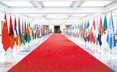 | This photo shows flags of China, the UN and BRI partners. (PHOTO: XINHUA) |