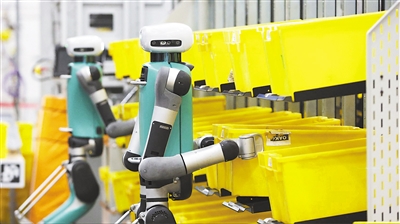 U.S. e-commerce giant Amazon is deploying a human-like robot, named Digit, in a warehouse to perform repetitive manual tasks, such as shifting empty tote boxes, and work collaboratively with employees.
