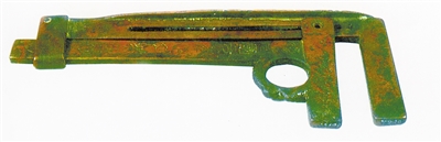 The caliper consists of two rulers, a fixed and a movable one. The fixed ruler is 13.3 cm long and has a fish-shaped handle on its upper end. The handle has a groove in the middle with a rotating and adjustable pin and can be moved left or right along the groove. The small, movable ruler is attached to the main ruler with a movable grip called a jaw. It can be moved along the main ruler by opening the jaw. The movable ruler has a thumb screw which provides a grip for moving it.