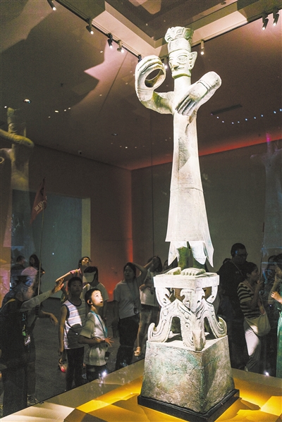 Known as the king of bronze statues in the world, it has a history of more than 3,000 years and was unearthed at a sacrificial pit at the Sanxingdui archaeological site in 1986.