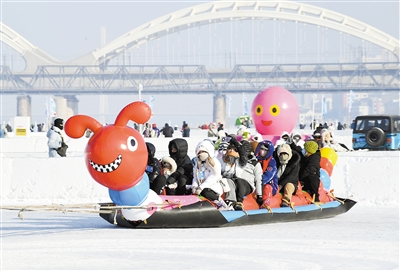 | Tourists enjoy ice and snow sports in Harbin, northeast China's Heilongjiang province. (PHOTO: VCG) |