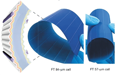 Notably, the 57 μm-thick solar cell stands out with a power-to-weight ratio of 1.9 watts per gram and a curvature radius of 19 mm, surpassing existing products by two to three times.