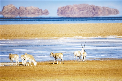 | Xizang antelopes are seen near Serling Tso Lake in southwest China's Xizang Autonomous Region. (COURTESY PHOTO) |