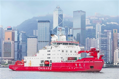 China's first domestically made polar icebreaker Xuelong 2, or Snow Dragon 2, arrived in Hong Kong for the very first time on April 8, 2024 for a five-day visit. The visit is hoped to promote Hong Kong people's understanding of polar expedition, especially young people's interest and enthusiasm for polar scientific research. (PHOTO: Ministry of Natural Resources)