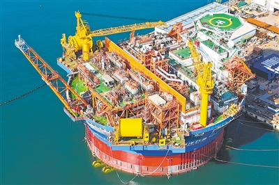 "Haikui No.1," Asia's first cylindrical floating production, storage, and offloading facility, is completed and delivered in Qingdao, marking a significant breakthrough in the independent design and construction of key technologies for deep-water oil and gas equipment in China. (PHOTO: XINHUA)